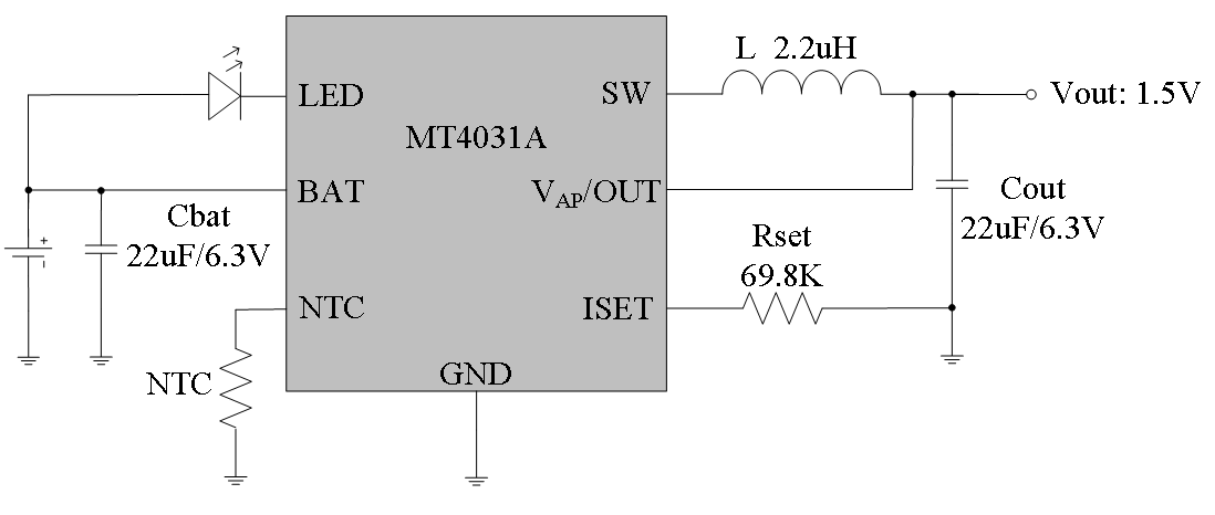 充電工作時(shí), 可以為3.7V / 3.2V鋰電池進(jìn)行充電,電流最高可配置0.5A。 放電工作時(shí),采用開(kāi)關(guān)頻率1.5MHz同步降壓轉(zhuǎn)換器進(jìn)行放電,放電電流可以達(dá)到3.5A。 內(nèi)部集成充電、充滿及短路狀態(tài)指示。 NTC功能實(shí)時(shí)監(jiān)測(cè)電池溫度,確保電池的安全可靠。 MT4031A集成充電、充滿及短路等狀態(tài)指示。 MT4031A空載時(shí)自耗電僅6uA。 關(guān)鍵參數(shù)