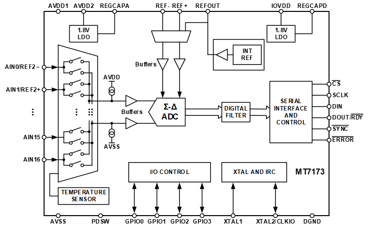 該器件是一款低功耗24位16通道Sigma-Delta模數(shù)轉(zhuǎn)換器芯片,芯片中包含調(diào)制器、運算放大器、開關(guān)電容電路、高精度帶隙基準(zhǔn)、線性穩(wěn)壓器、時鐘產(chǎn)生電路、振蕩器及數(shù)字濾波器等。