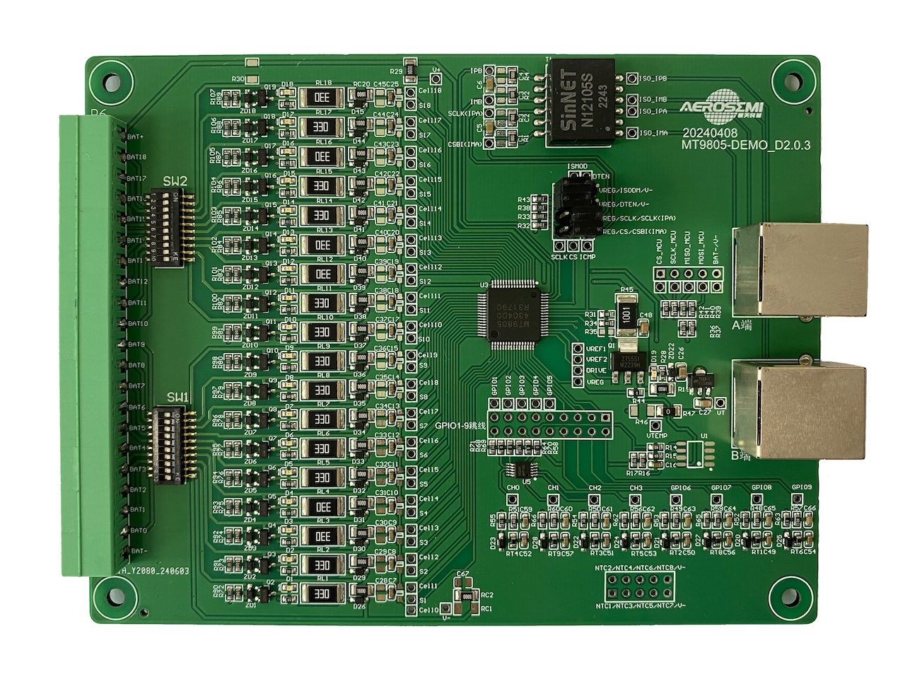 MT9805是一款多通道電池堆監(jiān)控器,可測量多達(dá)18串電池電壓,總測量誤差(TME)小于3.0 mV。MT9805具有0 V至5 V的電池測量范圍,適合大多數(shù)電池應(yīng)用可在290 us內(nèi)完成所有18個(gè)電池電壓測量,并可以選擇較低的數(shù)據(jù)采集速率以實(shí)現(xiàn)高降噪抑制??蓪⒍鄠€(gè)MT9805器件串聯(lián),以便同時(shí)監(jiān)測更長串的高壓電池組。每個(gè)MT9805都有一個(gè)isoSPI接口,用于實(shí)現(xiàn)高速抗干擾局域通信。多個(gè)器件以菊花鏈形式連接,通過最頂端或底端的器件連接到主處理器。該菊花鏈可雙向操作,即使通信路徑出錯(cuò),也能確保通信完整性。電池堆可直接用于為MT9805供電,也可采用隔離電源對其供電。MT9805包括針對每個(gè)電池的被動均衡,可對每個(gè)單元進(jìn)行單獨(dú)的脈寬調(diào)制(PWM)占空比控制。其他特性包括一個(gè)板載5V穩(wěn)壓器、9個(gè)通用I/O接口以及SLEEP模式(在此模式下,功耗降至7 uA)。