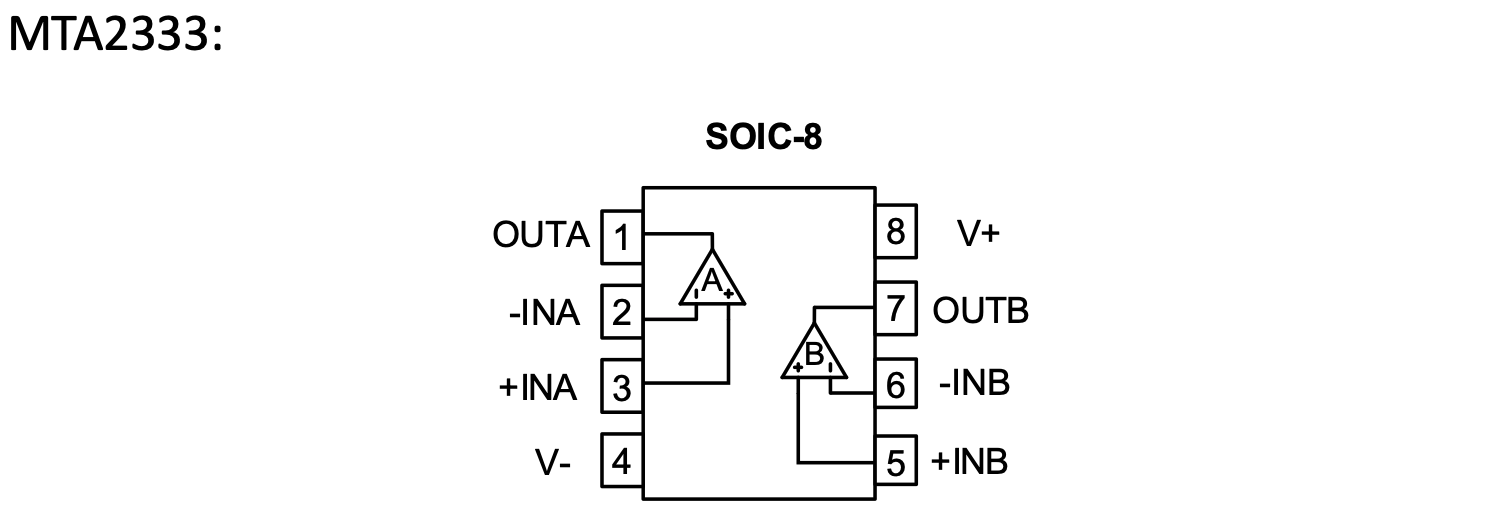 MTA0333/2333是單/雙路CMOS 運算放大器,它使用專有的自動校準技術來提供極低的失調電壓(典型值為1μV)以及隨時間和接近零的漂移。MTA0333/2333有著較好的共模抑制比而且沒有與傳統(tǒng)互補輸入級相關的分頻,這種設計應用與驅動模數(shù)轉換器(ADC)有著巨大的優(yōu)勢。