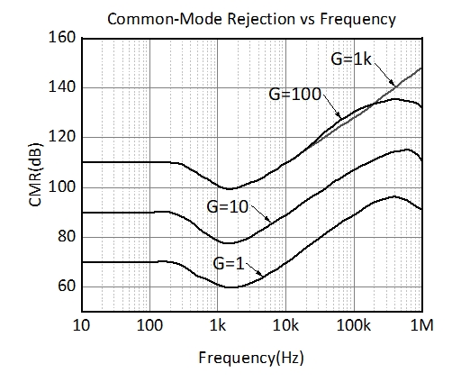MTI0326具有靈活的增益設(shè)置,且精度極高,因此可以廣泛應用在對直流精度有較高需求的應用中。出色的長期穩(wěn)定性、極低的1/f噪聲、極低的溫漂確保在產(chǎn)品的整個使用壽命中均具有極高的直流精度。但由于電路原理為電流拷貝,變化增益時,R1值越小輸入失調(diào)電壓越小,共模抑制比越好。建議根據(jù)實際情況選擇盡可能低的R1值。但VIN/R1不能超過250uA。