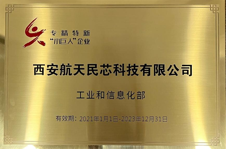 西安航天民芯科技有限公司于2020年11月13日被工業(yè)和信息化部中小企業(yè)局認(rèn)定為專精特新“小巨人”企業(yè),并正式授牌。